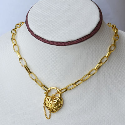 Title (ebay affiliate link): 9K Yellow Gold Filled Oval Belcher Necklace & Exclusive Heart Padlock 50cm