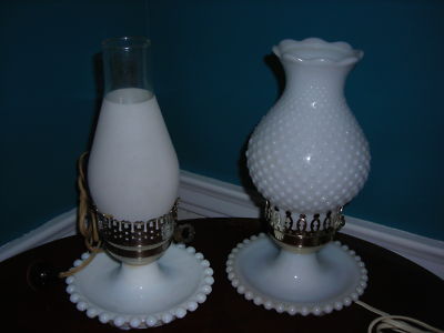 Vintage Milk Glass Table Lamps/hob nail/ lantern (2)