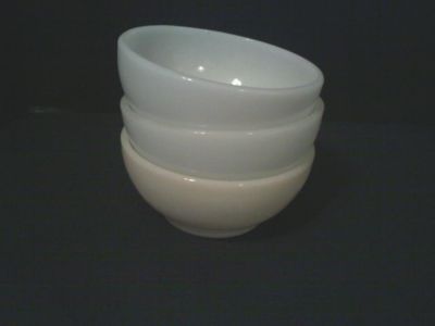 Title (ebay affiliate link): 3 FIRE KING WHITE MILK GLASS CHILI CEREAL BOWLS, NO RESERVE!!!