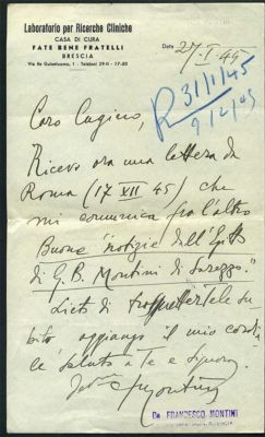 ORIGINAL DOCUMENT BELONGED TO POPE PAUL VI BROTHER DATED 1945