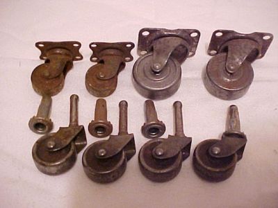 Title (ebay affiliate link): 8 pc Vintage Antique Steel Casters Castors Rollers Wheels Salvaged Furniture NR!