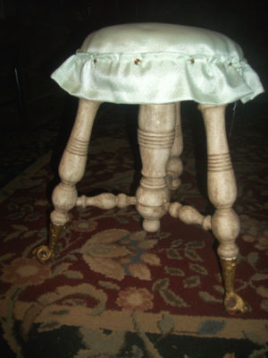 Title (ebay affiliate link): Antique Little Piano Dressing Table Stool shabby chic look- with Glass claw feet