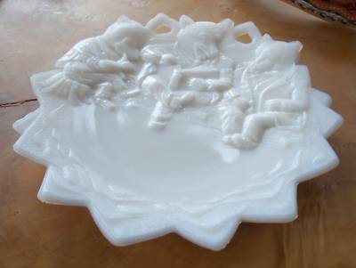 ANTIQUE THREE BEARS PARTY MILK GLASS PLATE WESTMORELAND