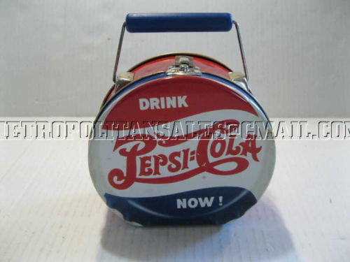 Title (ebay affiliate link): Round Pepsi Cola Lunch Box Tin With Handle In Great Condition! Super Nice