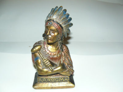 Title (ebay affiliate link): ARACOMA TEXTILE CO. WELLSBORO ,PA. INDIAN CHEIF PAPER WT. BRONZE