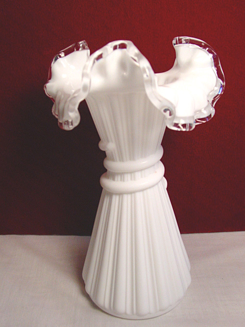 FENTON Milk Glass RUFFLED EDGE 8" VASE Beautiful Clean