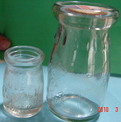 2 VINTAGE SMALL GLASS MILK BOTTLES ST. LOUIS CREAMER