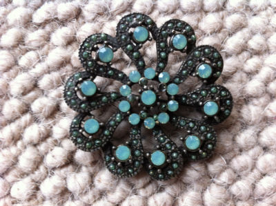 Ladies Aquamarine Flower Antique Style Brooch