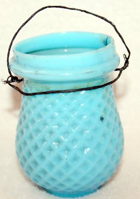 1880s Glass Candle Lantern Xmas Tree. Blue Milk Glass