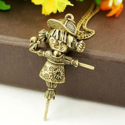 Title (ebay affiliate link): Antique style Cute scarecrow girl overalls squirrel Charm pendant Necklace X54