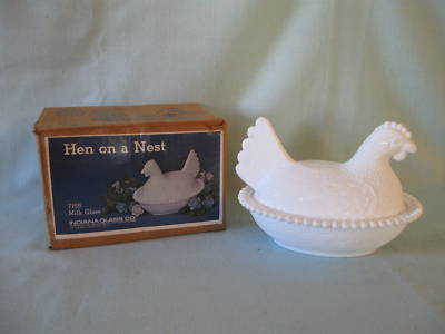 Indiana Glass Milk Glass Hen On A Nest 7155 With Box