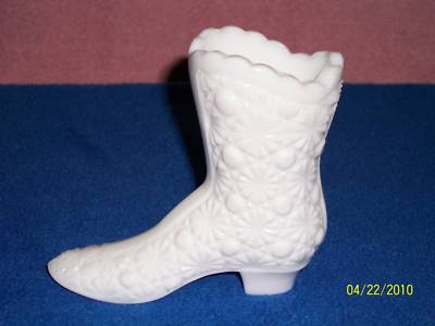FENTON CARNIVAL DAISY & BUTTONS MILK GLASS BOOT