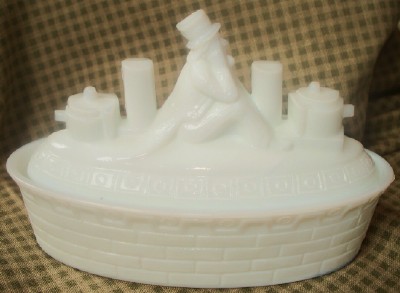 RARE UNCLE SAM ON SHIP MILK GLASS CANDY DISH NO RESERVE