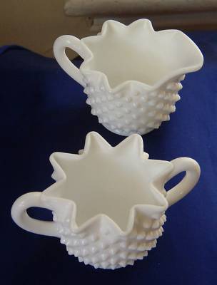 Vtg Hobnail Milk Glass Star Shaped Creamer & Sugar Bowl