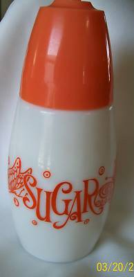 ~COOL~Sugar Shaker~Milk Glass~Orange Top & Butterflies