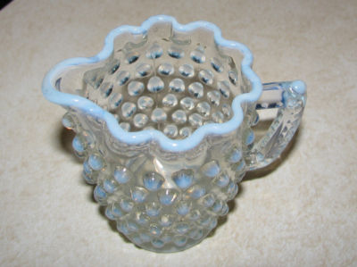 ANCHOR HOCKING DEPRESSION GLASS CREAMER - PITCHER MOONSTONE HOBNAIL PATTERN