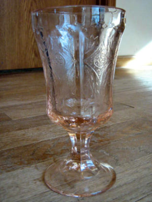 Title (ebay affiliate link): Vintage Pink Depression Glass Water Goblet Federal Madrid Pattern