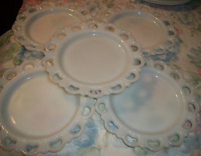 Title (ebay affiliate link): SET OF 5 ANCHOR HOCKING OLD COLONY LACE EDGE MILK GLASS LUNCHEON PLATES