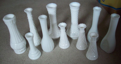 Lot of 11 Milkglass bud vases
