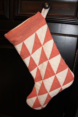 Title (ebay affiliate link): PRIMITIVE ANTIQUE VINTAGE 1900'S "FLYING GEESE" QUILT PATTERN STOCKING. CHARMING