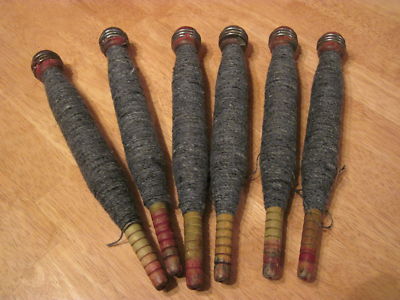 LOT OF 6 VINTAGE WOOD YARN SPOOLS WITH METAL