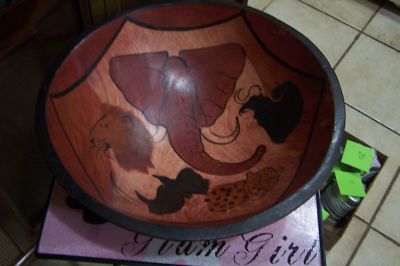 Title (ebay affiliate link): Vintage Primitive African Handmade signed Wooden Bowl Elephant/rhino/lion,etc.