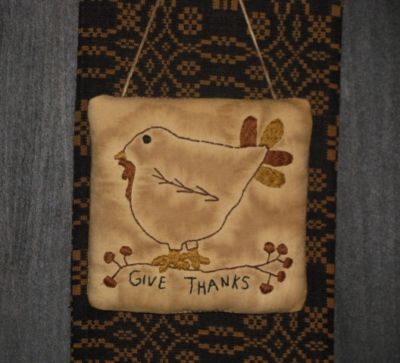 Title (ebay affiliate link): Primitive Stitchery Hanger ~ Give Thanks Turkey ~ Thanksgiving