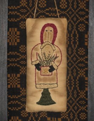 Primitive Stitchery Hanger ~ Make-Do Santa Holding Greenery ~ Christmas/Winter