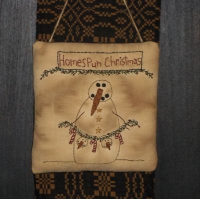 Title (ebay affiliate link): Primitive Stitchery Hanger ~ Homespun Christmas Snowman ~ Christmas/Winter