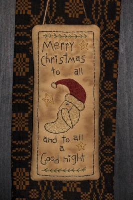 Primitive Stitchery Hanger ~ Merry Christmas To All & To All A Good Night ~Santa
