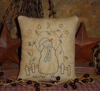 Title (ebay affiliate link): ~WYNTER THYME SNOWMAN~ Primitive Stitchery Sampler Pillow
