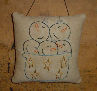 Title (ebay affiliate link): ~BOWL OF SNOWMAN BULBS~Primitive Stitchery Cupboard Pillow