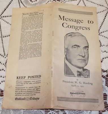 Title (ebay affiliate link): OAKLAND TRIBUNE "MESSAGE TO CONGRESS" BOOKLET-WARREN G. HARDING-APRIL 12, 1921