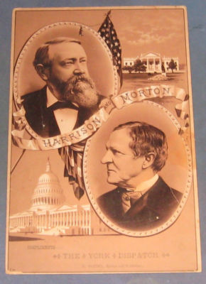1888 PRESIDENT HARRISON & MORTON POSTER COMPLIMENTS THE YORK DISPATCH