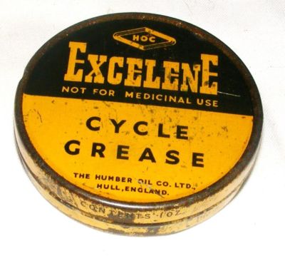 Title (ebay affiliate link): Vintage Huber Oil Co EXCELENE bicycle grease tin
