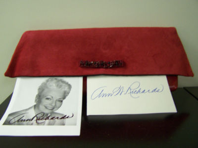 Title (ebay affiliate link): Texas Governor Ann Richards Red Clutch Leather Purse & Autograph