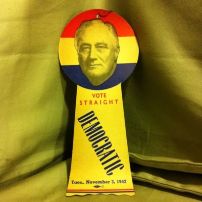 Title (ebay affiliate link): Antique FDR Large~RIBBON~Tues. 11/3/1942~FD. ROOSEVELT Political Campaign Button