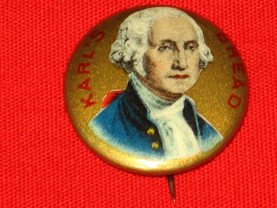 1920'S George Washington, Karl's Bread Advertising Pin Pinback Button Badge