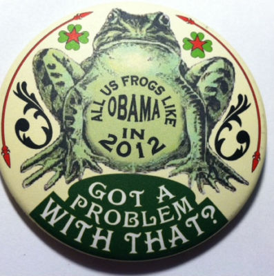 Title (ebay affiliate link): Limited Edition 3 Inch Guardfrog All Us Frogs Like Obama in 2012 Pinback