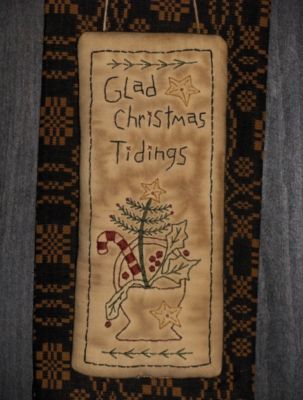 Primitive Stitchery Hanger ~ Glad Christmas Tidings Basket ~ Christmas/Winter