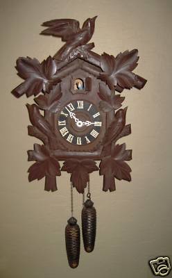 Title (ebay affiliate link): ANTIQUE GERMANY~CUCKOO CLOCK~BIRDS W/GLASS EYES~QUARTZ