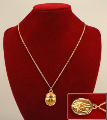 Title (ebay affiliate link): 22kt GP Egyptian Khepher Scarab Pendant w/ Eye of Horus & Chain