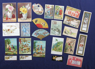 Trade cards and items from a Victorian scrapbook