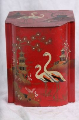 Title (ebay affiliate link): NR VINTAGE BARET WARE RED ENGLISH BISCUIT TIN FLAMINGOS CANISTER ORIENTAL