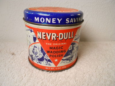 Title (ebay affiliate link): VINTAGE ANTIQUE NEVR-DULL TIN THE GEORGE BASCH CO. FREEPORT,N.Y. 1941