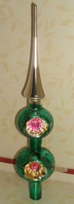 Title (ebay affiliate link): Vtg Blown Glass Glitter Christmas Mercury Tree Topper Silver Green Yellow Pink