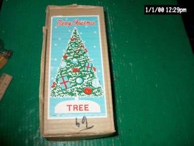 BIG VINTAGE XMAS BOTTLE BRUSH TREE IN THE ORIGINAL BOX-SIGNED 69 CENTS-JAPAN