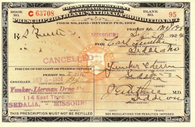 Title (ebay affiliate link): Antique 1924 PROHIBITION WHISKEY ALCOHOL PRESCRIPTION Medicine Pharmacy Bar