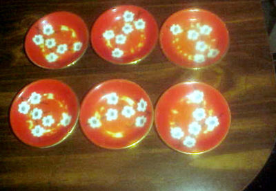 LOVELY ORANGE ANTIQUE TILLOWITZ BUTTERPATS DISHES- SET OF 6