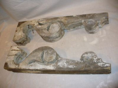| 2 Pine Wood White Painted Corbels Victorian Era Ca. 1900 |